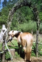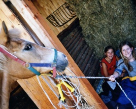 ¿Es usted amigo de colores, objetos artesanales, arte en cada rincón, cocina agradable con horno antiguo y habitación moderna especialmente equipada para sus hijos? Entonces: ¡Ha encontrado lo que buscaba! En el jardín hay barbacoa; parque infantil y plaza de fútbol se encuentran justo al lado de la casa. Pueden ayudara cuidar los caballos, limpiar y acariciarlos. A los chicos les encantara... Por favor, infórmese de antemano (por teléfono) para que no surjan problemas de reservaciones. La casa da albergue a 10 personas. En caso de grupo mayor son posibles camas suplementarias. Además ofrecemos posibilidad de dormir en heno. Solamente necesita saco de dormir propio (muy adecuado para excursiones escolares). |